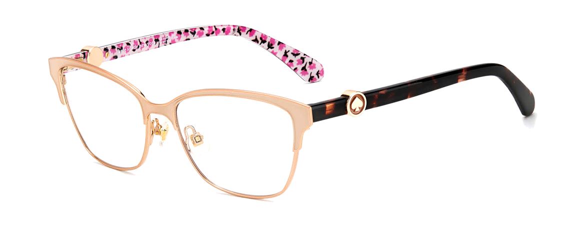 Take a look at the Kate Spade Audri/G eyeglasses for ladies and discover your inner style fanatic. A glossy pink hue with styled ends that are upswept exudes glamor. Flat temples and flexible spring hinges ensure ideal comfort and fit.